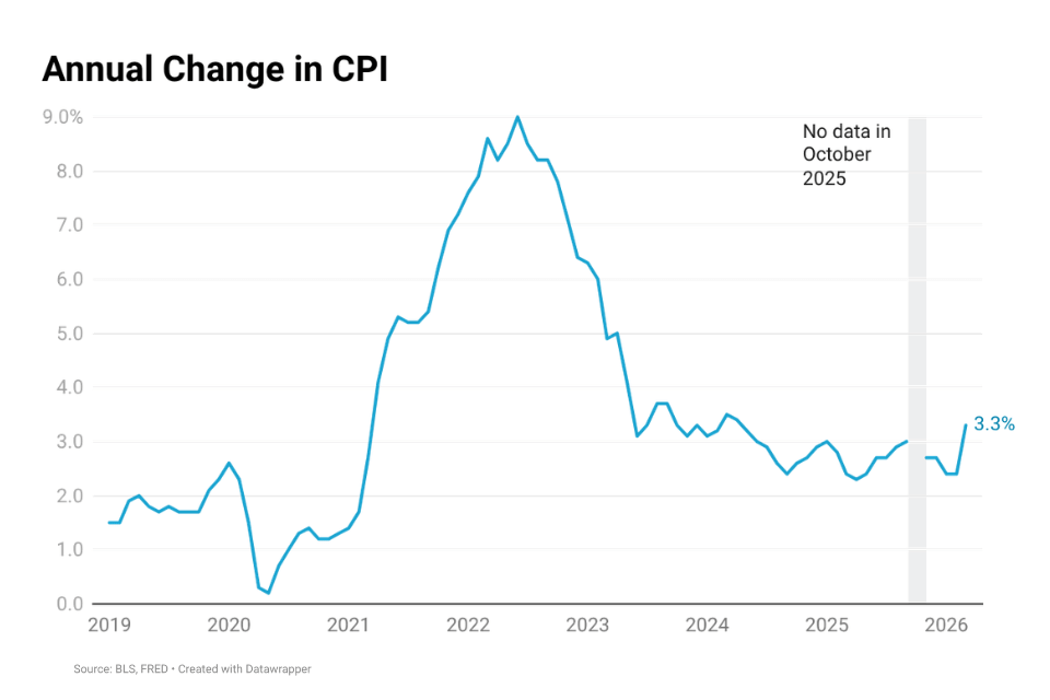 The latest Consumer Price Index report for March 2026 from the Bureau of Labor Statistics showed that inflation rose 0.9% compared to the previous month (the highest monthly gain since June 2022) and 3.3% over the past year, a two-year high. That is a significant acceleration, particularly compared to the more modest increases seen in prior months.